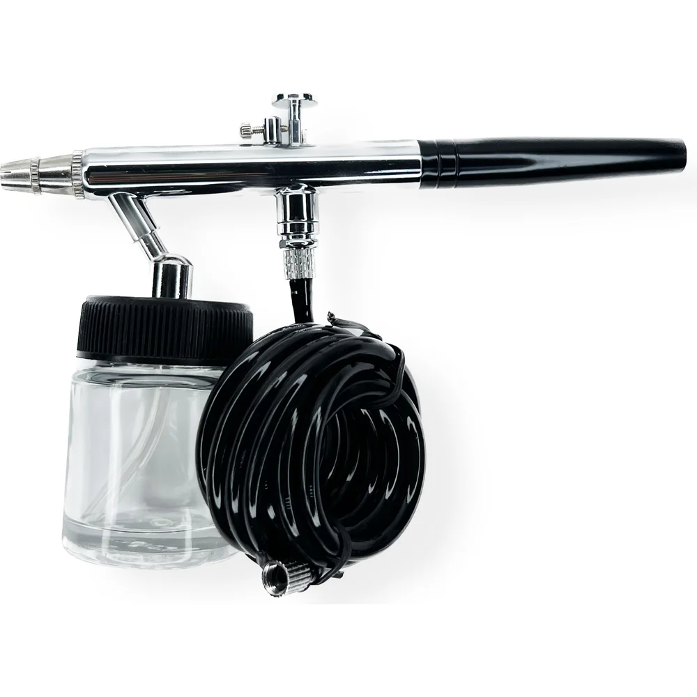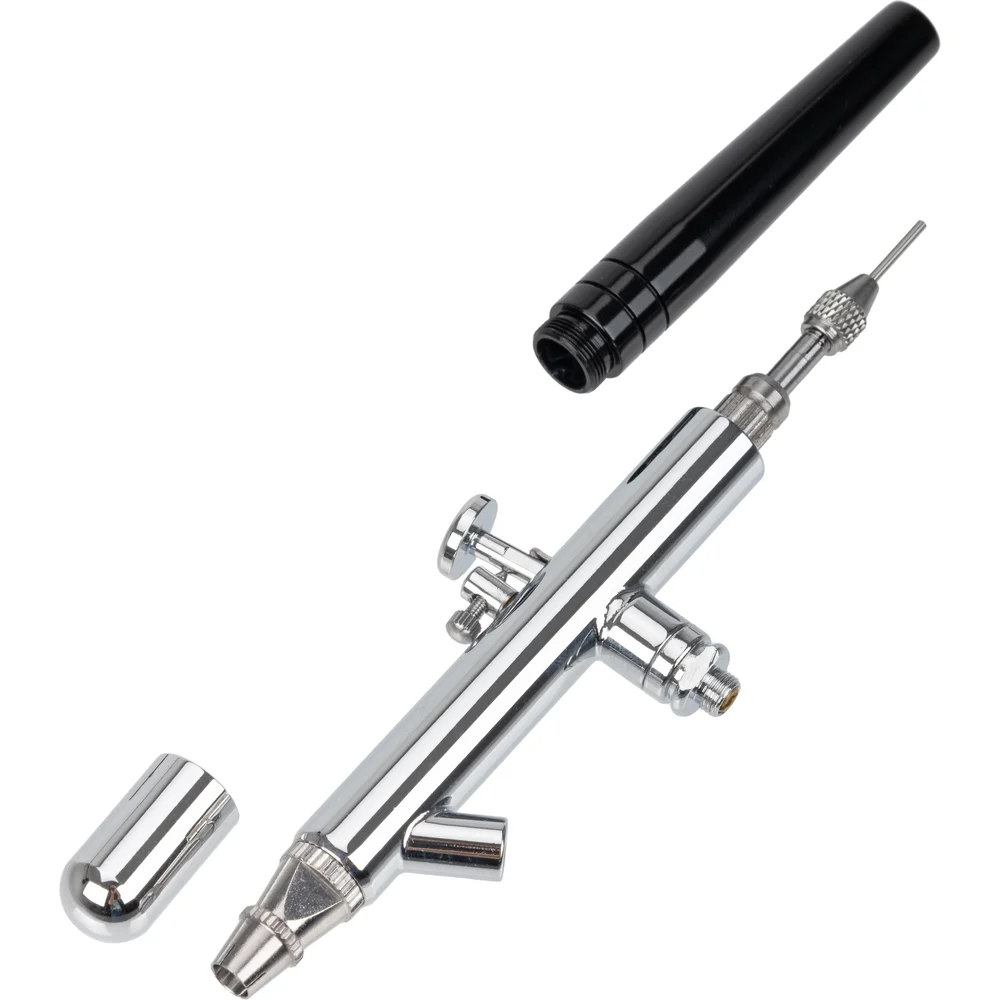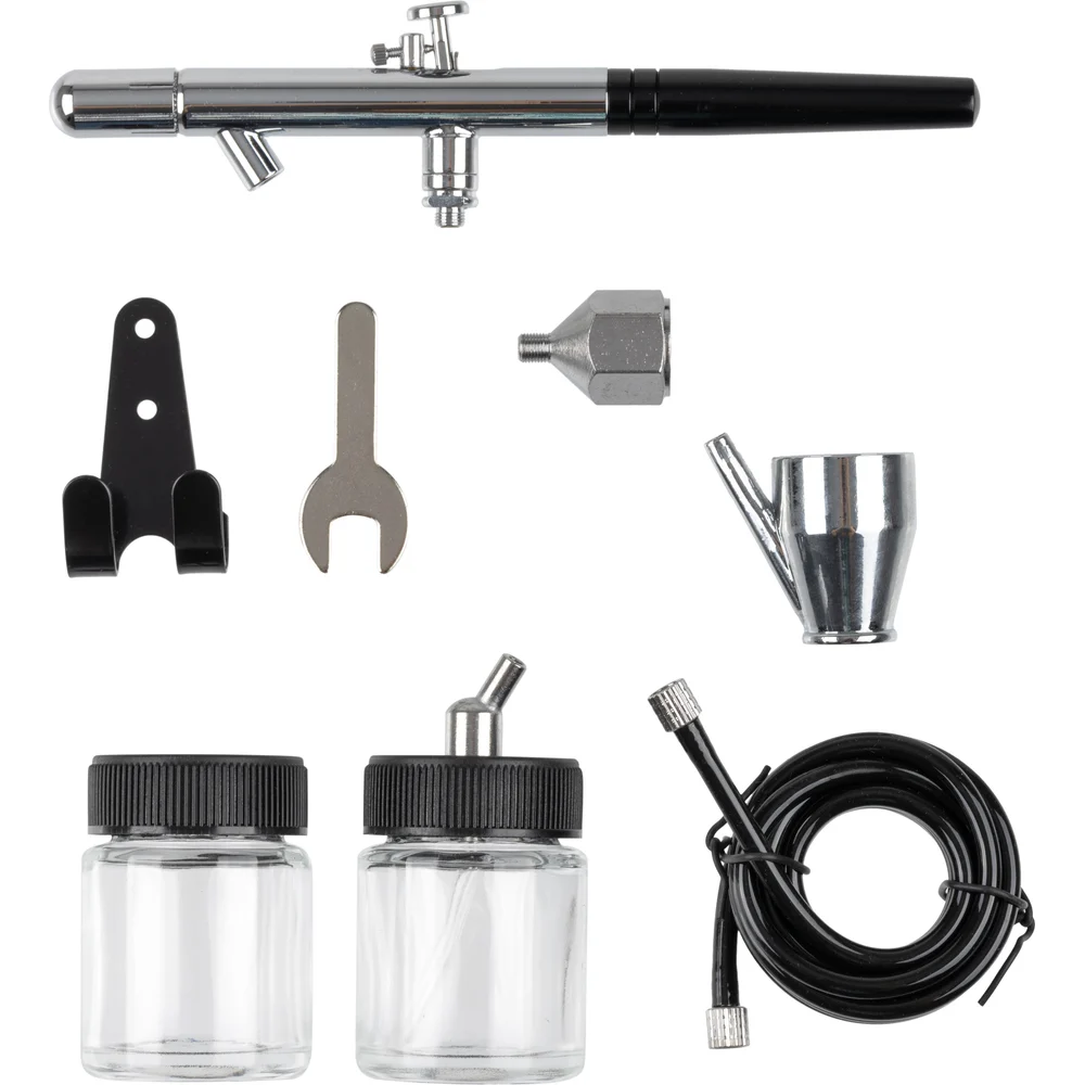 Комплектация Аэрограф; Воздушный шланг PVC; Стеклянный бачок 22мл 2шт; Металлический бачок 5мл; Ключ сервисный; Пипетка для удаления краски; Адаптер 1/4'' 5мм; Регулятор; Кейс