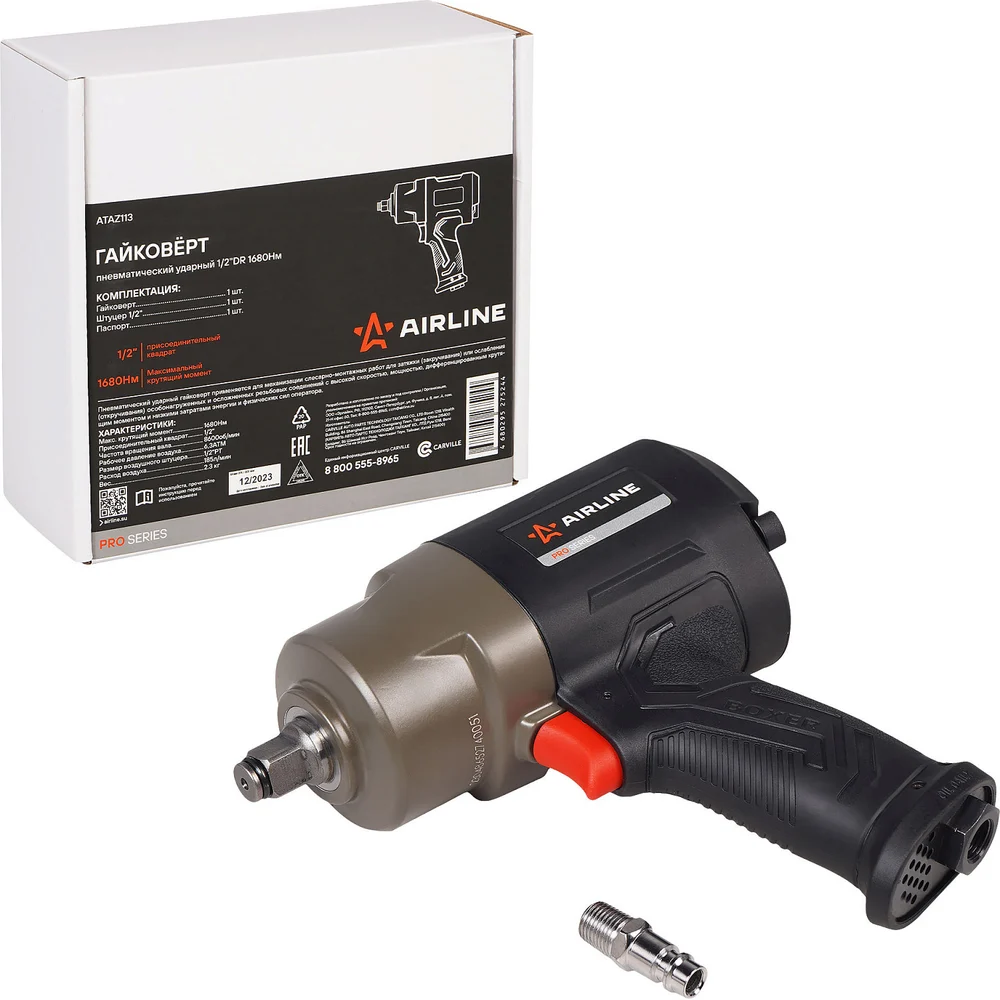 Гайковерт пневматический ударный композитный Airline 1/2"DR 1680Нм PRO ATAZ113