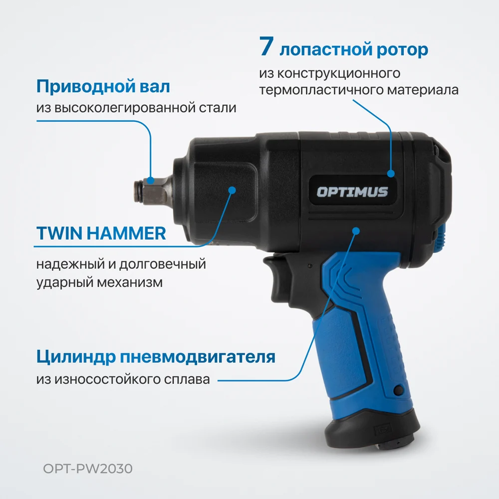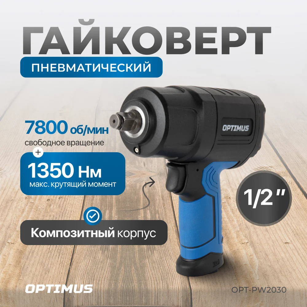 Купить Гайковерт пневматический ударный Optimus привод 1/2, 1350 Нм OPT-PW2030 по лучшей цене с доставкой - интернет магазин №1 в России