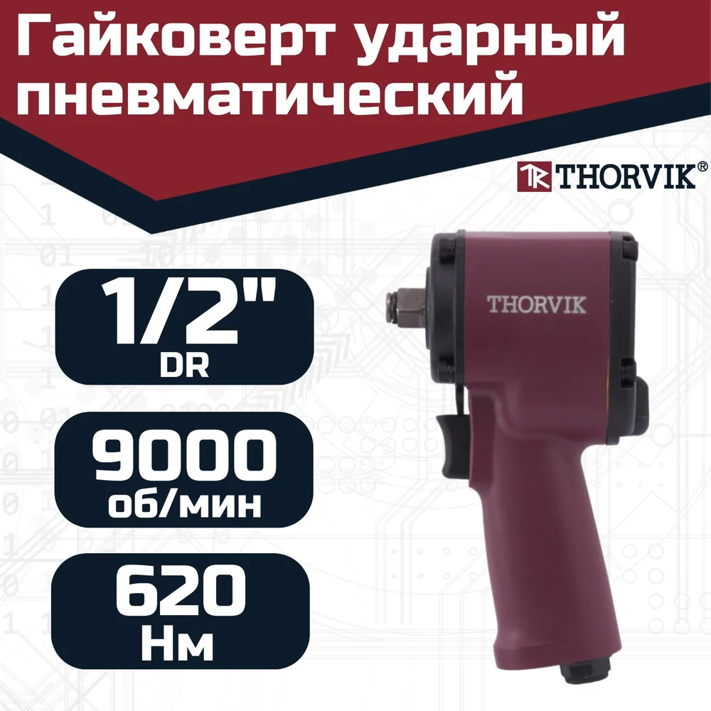 Купить Гайковерт ударный пневматический Thorvik AIW1262S 1/2DR, 9000 об/мин, 620 Нм 053923 по лучшей цене с доставкой - интернет магазин №1 в России