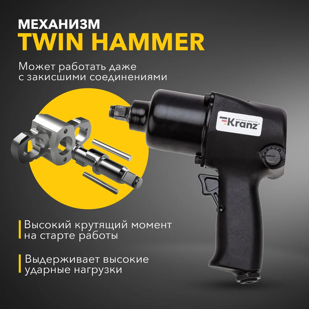 Купить Пневматический гайковерт KRANZ 1/2, 680 Нм KR-80-0702 по лучшей цене с доставкой - интернет магазин №1 в России