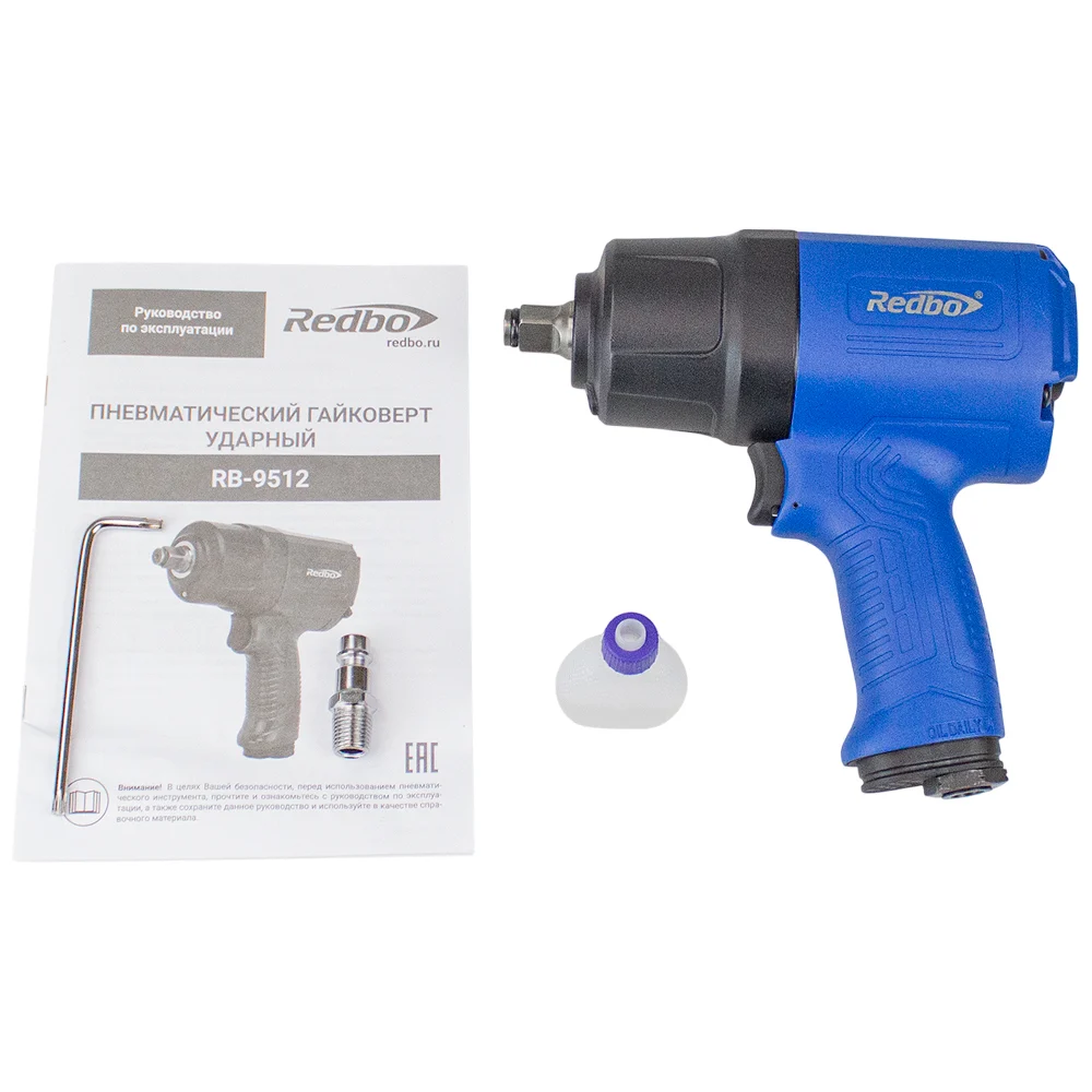 Купить Пневматический гайковёрт ударный Redbo RB-9512 (1/2, 1100Нм,198л/мин, 7800 об/мин, 6,3 бар) 39163 по лучшей цене с доставкой - интернет магазин №1 в России