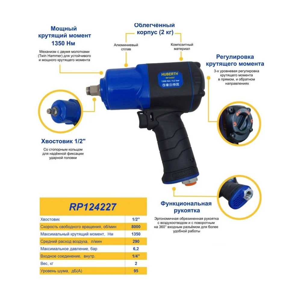 Купить Пневматический ударный гайковерт 1/2" HUBERTH RP124227 по лучшей цене с доставкой - интернет магазин №1 в России