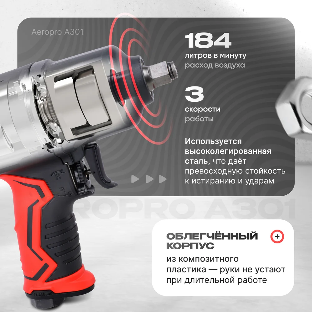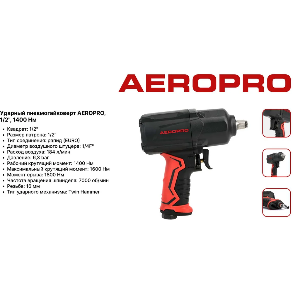 Купить Пневматический ударный гайковерт Aeropro 1/2", 1400 Нм A301 по лучшей цене с доставкой - интернет магазин №1 в России