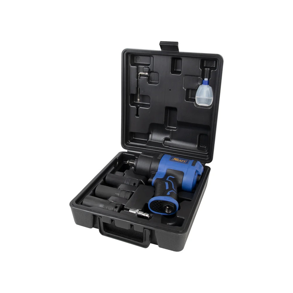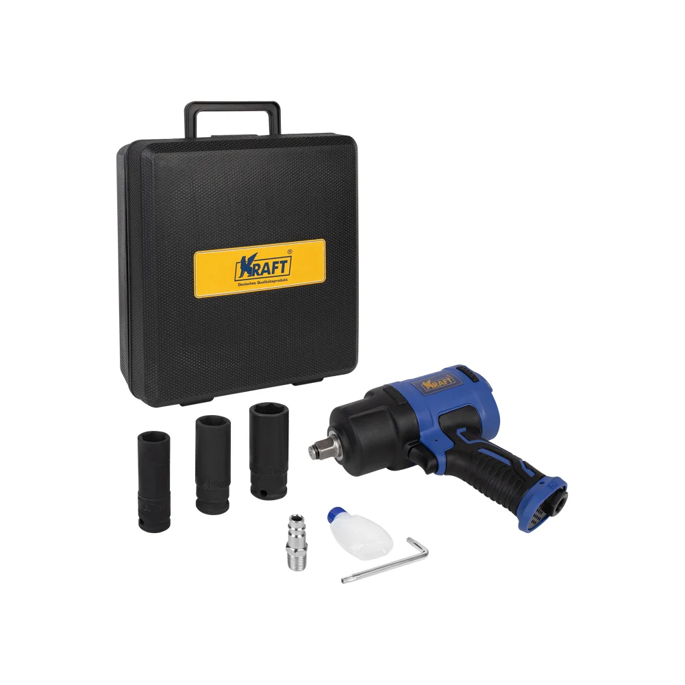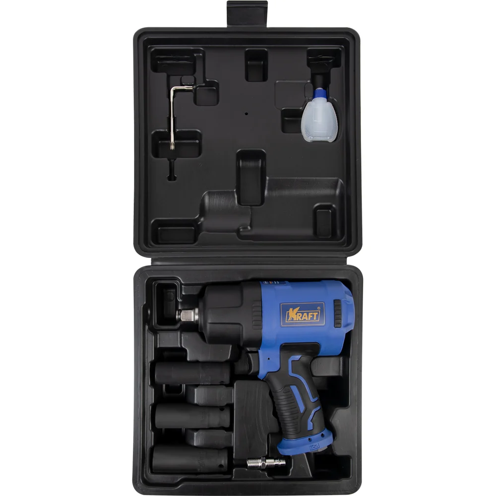 Купить Пневматический ударный гайковерт KRAFT 1/2 1450 н.м., в кейсе с головками KT 707014 по лучшей цене с доставкой - интернет магазин №1 в России