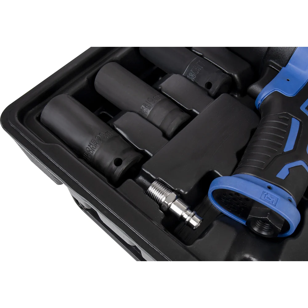 Пневматический ударный гайковерт KRAFT 1/2 1450 н.м., в кейсе с головками KT 707014