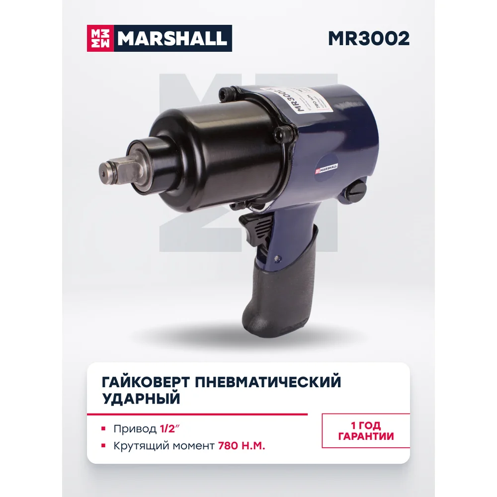 Купить Пневматический ударный гайковерт MARSHALL 780 н.м, 1/2 MR3002 по лучшей цене с доставкой - интернет магазин №1 в России