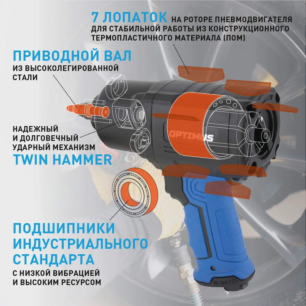 Купить Пневматический ударный гайковерт Optimus 1600 нм OPT-PW2050 по лучшей цене с доставкой - интернет магазин №1 в России