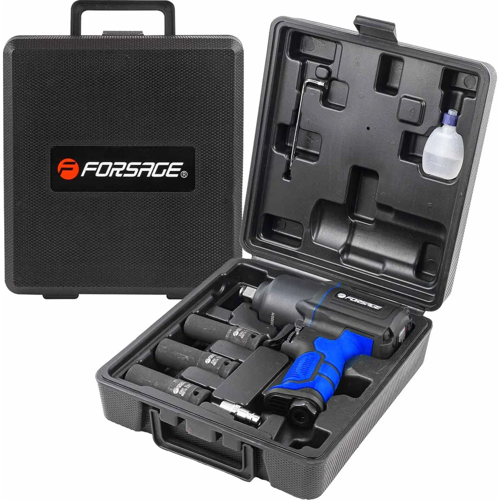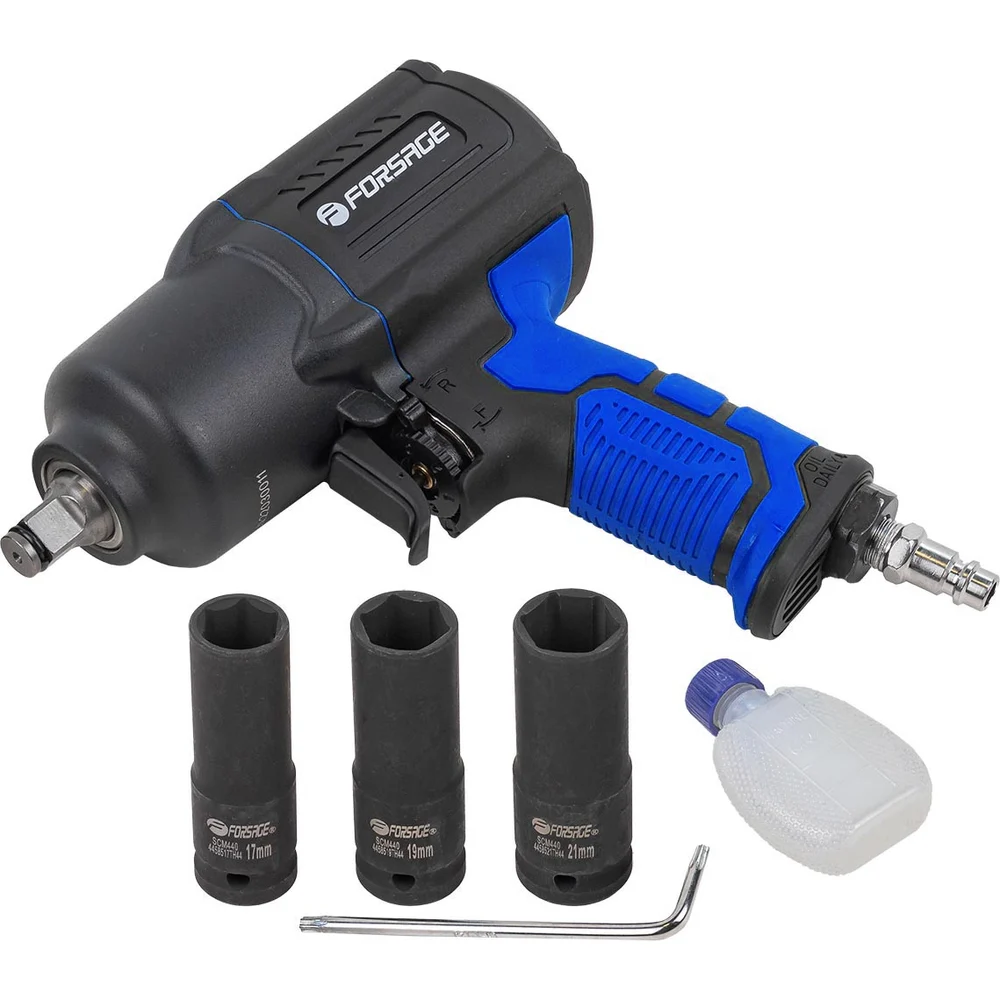 Купить Пневмогайковерт ударный Forsage "Twin Hammer" с регулировкой усилия в облегченном корпусе 1/2" + набор головок F-82549K4(48139) по лучшей цене с доставкой - интернет магазин №1 в России