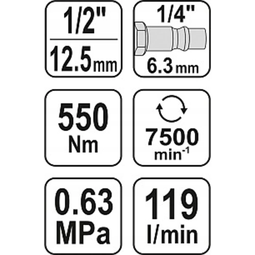 Пневмогайковерт YATO 1/2" ударный 550Нм 0,63 MPa YT-09511 370309511 092 1