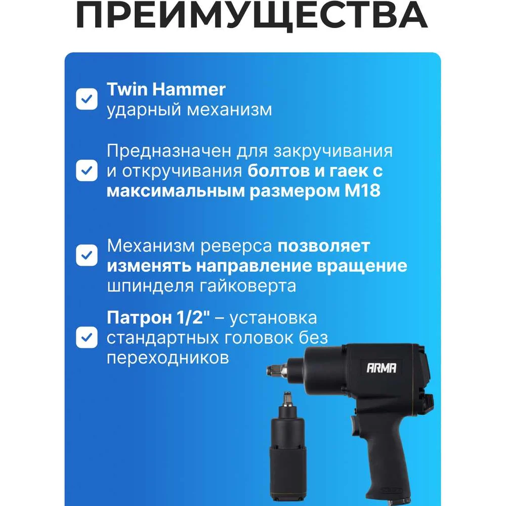 Купить Ударный пневматический гайковерт ARMA 1/2, 850 Нм DT-3800 по лучшей цене с доставкой - интернет магазин №1 в России