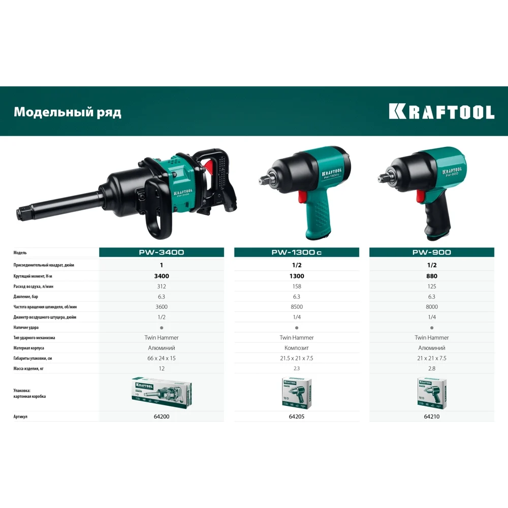 Купить Ударный пневматический гайковерт KRAFTOOL PW-900, 1/2" 64210 по лучшей цене с доставкой - интернет магазин №1 в России