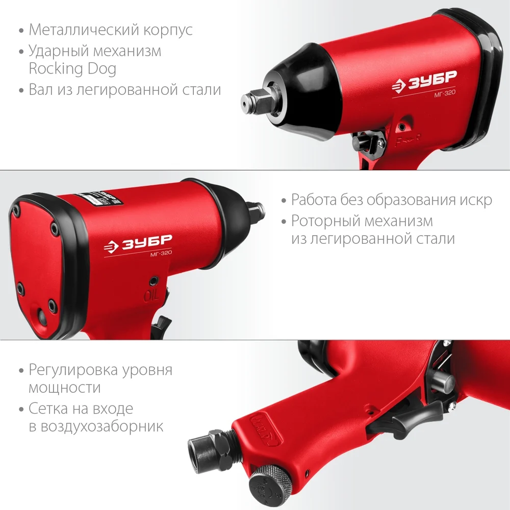 Купить Ударный пневматический гайковерт ЗУБР МГ-320 1/2", 320 Нм 64285 по лучшей цене с доставкой - интернет магазин №1 в России