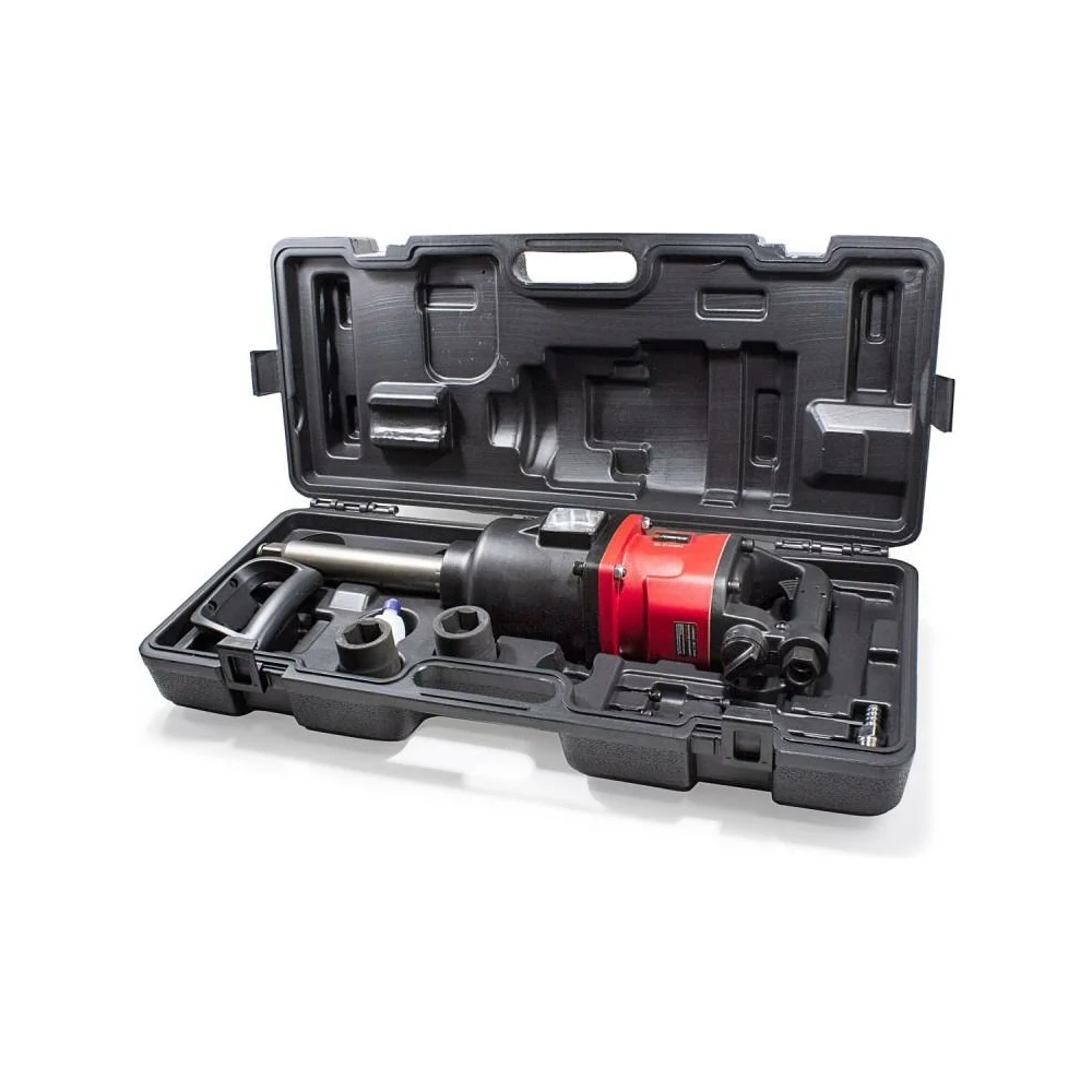 Комплектация Ударный пневмогайковерт; Ручка; Головки 1" 32,33 мм; Штуцер; Масленка; Кейс