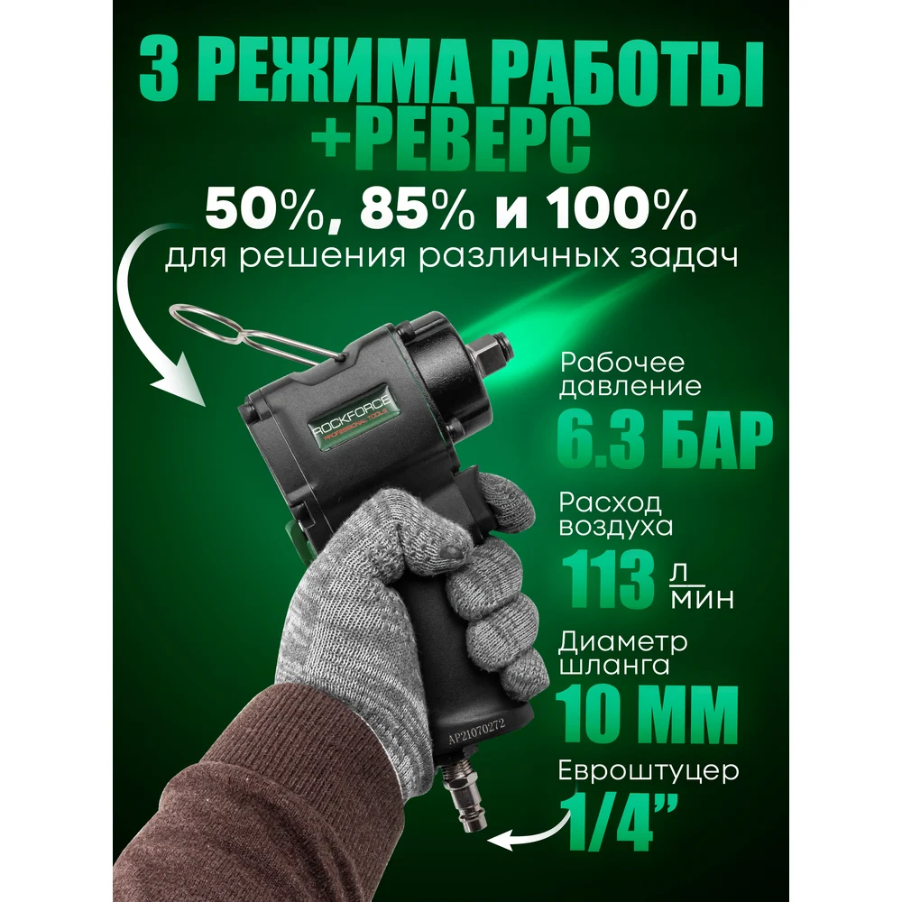 Купить Ударный пневмогайковерт Rockforce Compact с реверсом и регулировкой усилия 1/2'' 600Hм, 8500 об/мин,6.3bar,113 л/мин,1.45кг RF-82542(11712) по лучшей цене с доставкой - интернет магазин №1 в России