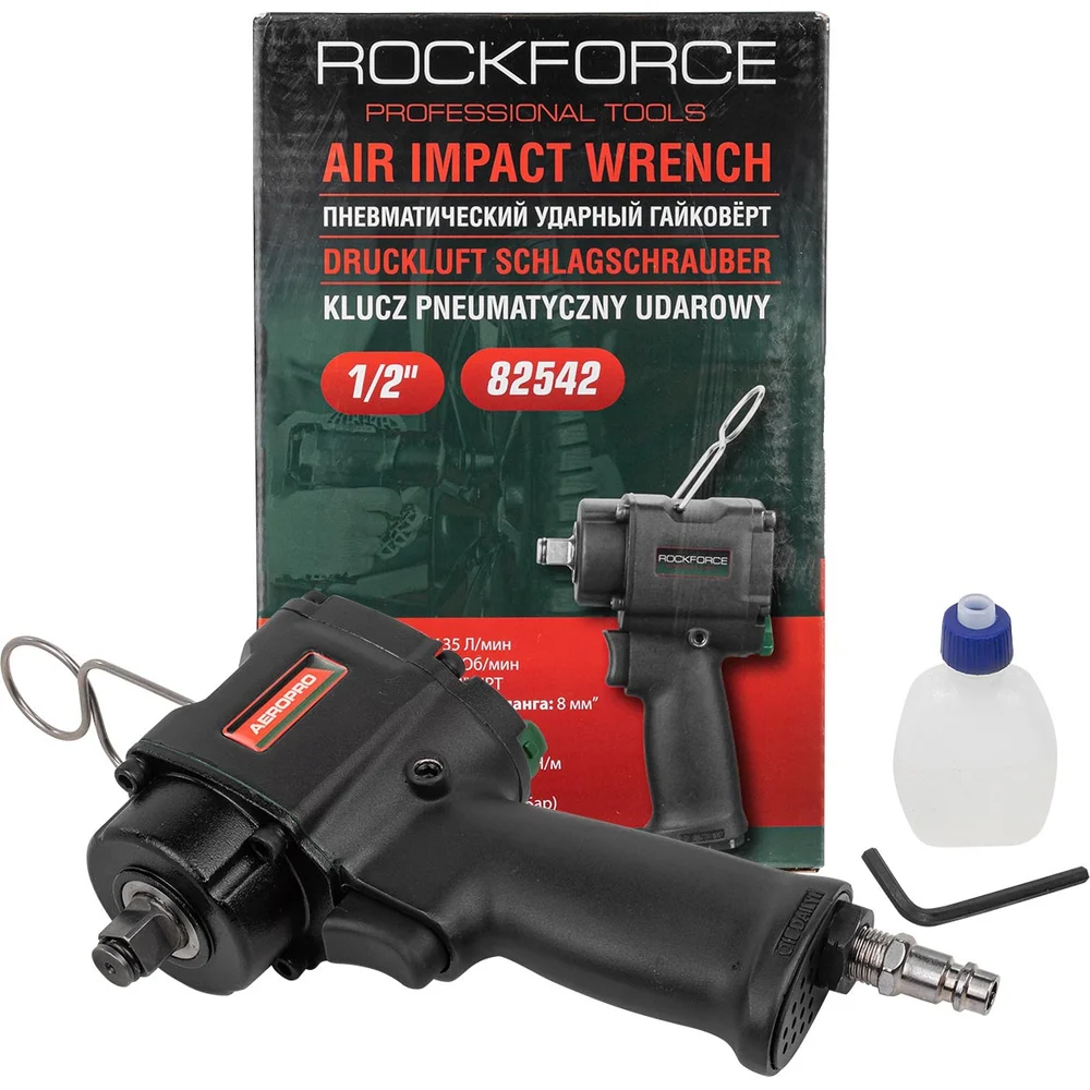 Ударный пневмогайковерт Rockforce Compact с реверсом и регулировкой усилия 1/2'' 600Hм, 8500 об/мин,6.3bar,113 л/мин,1.45кг RF-82542(11712)