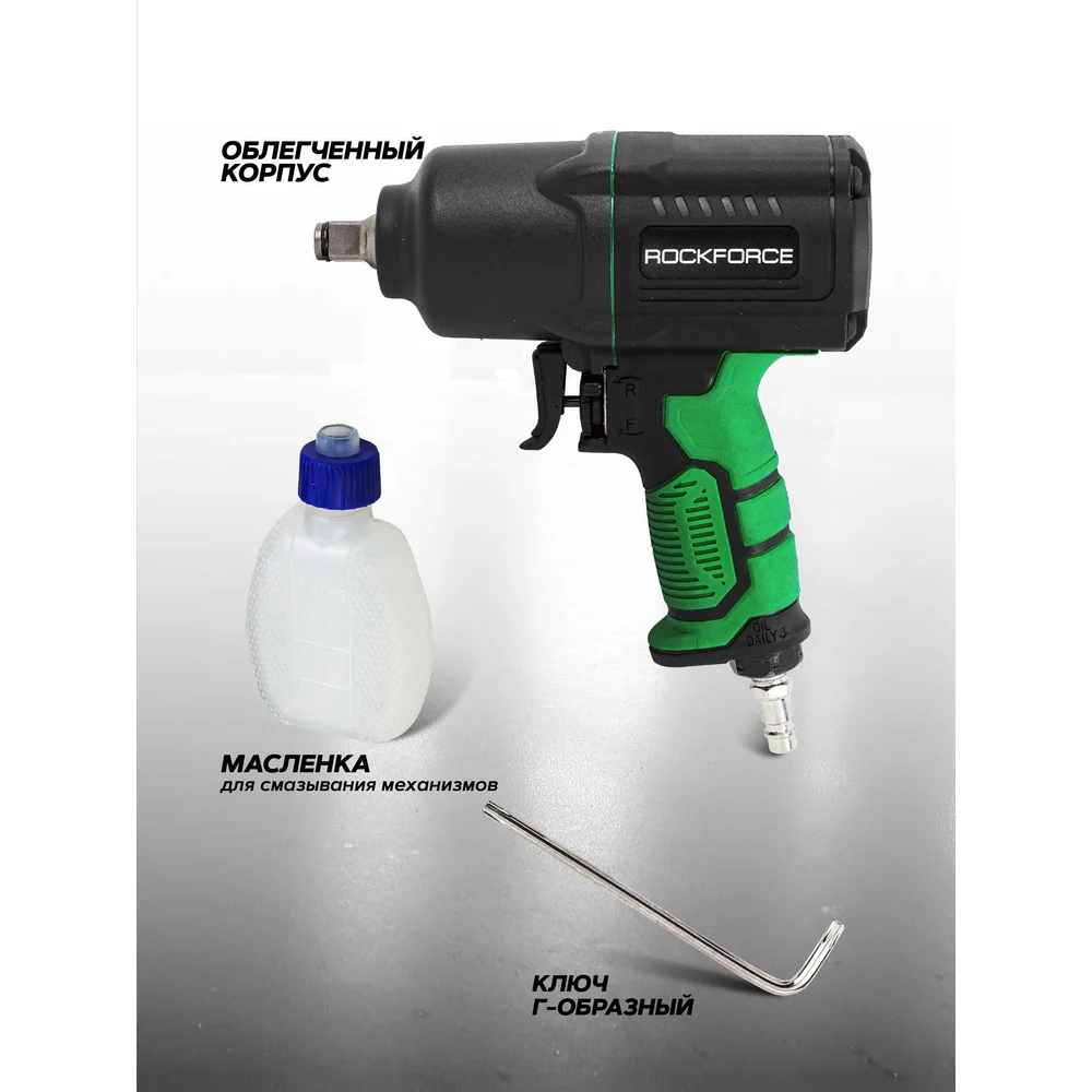 Купить Ударный пневмогайковерт Rockforce Twin Hammer с реверсом и регулировкой усилия в облегченном корпусе 1/2" 1450Hм, 7000 об/мин,6.3bar,198 л/мин, вес 2кг RF-82549(48137) по лучшей цене с доставкой - интернет магазин №1 в России