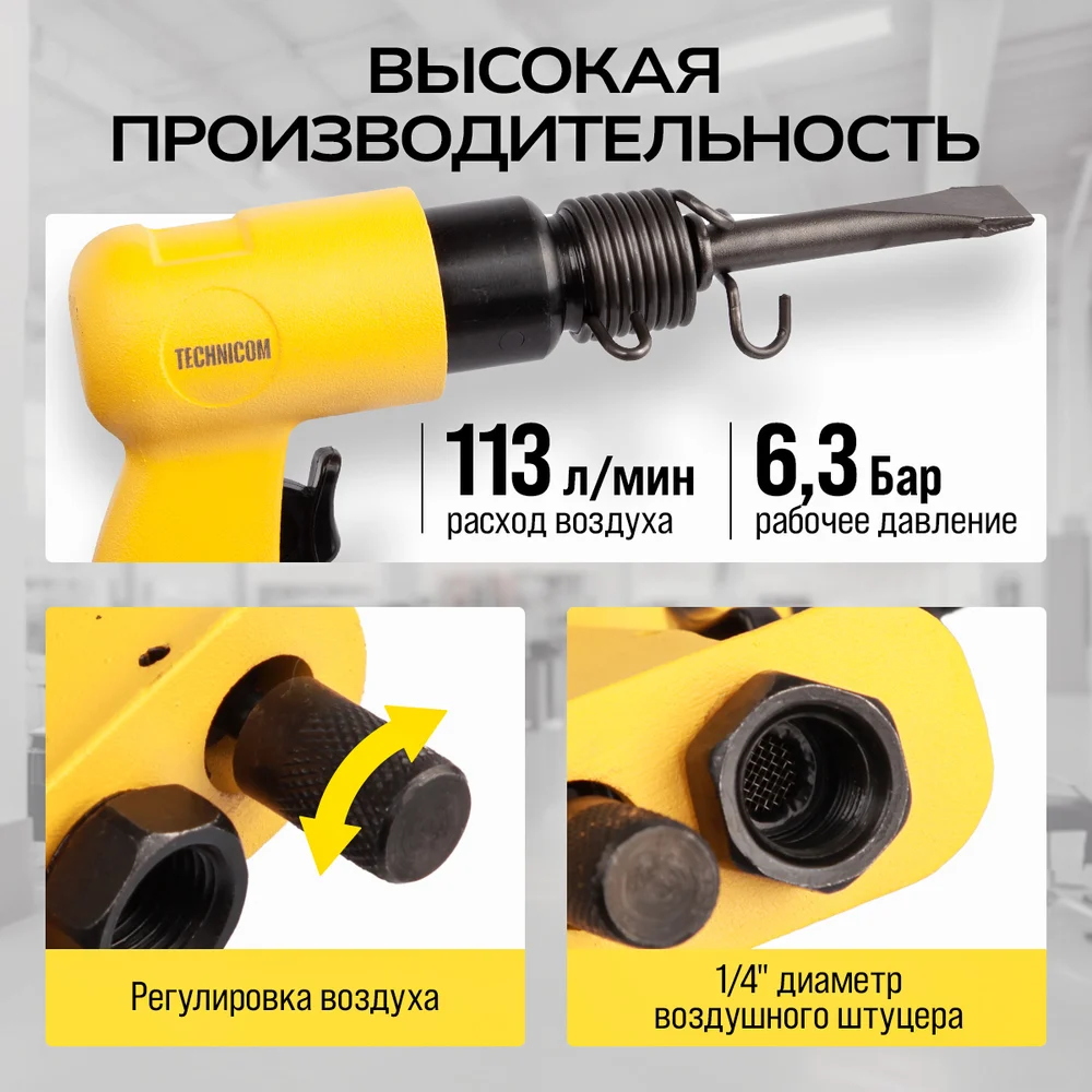 Купить Пневматический молоток TECHNICOM 6,3 Бар, 113 л/мин, 4500 уд/мин TC-AH150 по лучшей цене с доставкой - интернет магазин №1 в России