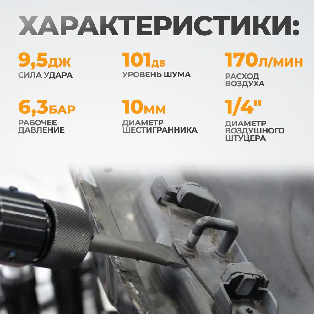 Купить Пневматический молоток WIEDERKRAFT 2500 уд/мин, HEX 175 мм WDK-24120 по лучшей цене с доставкой - интернет магазин №1 в России