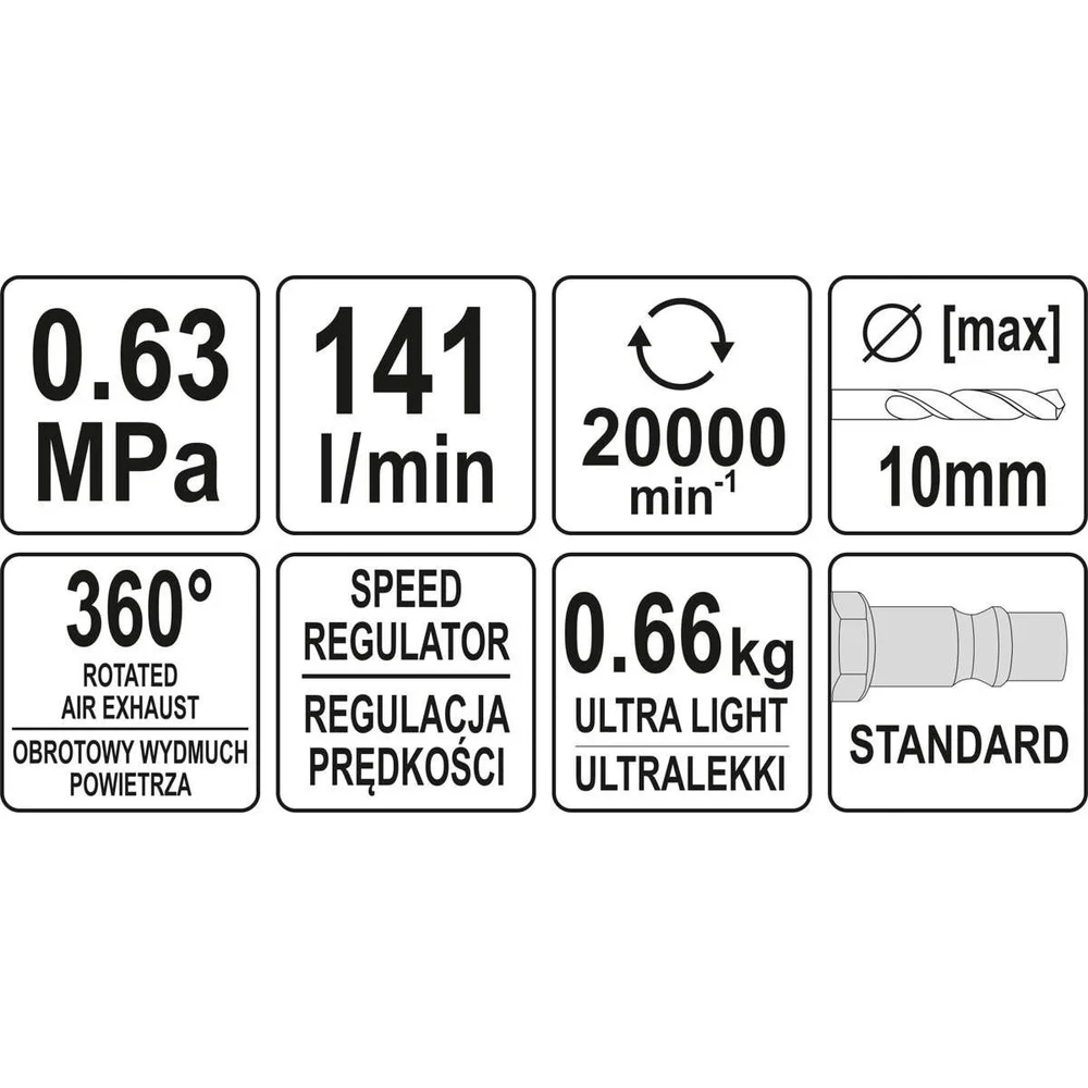 Купить Пневматическая прямая дрель YATO YT-09695 по лучшей цене с доставкой - интернет магазин №1 в России