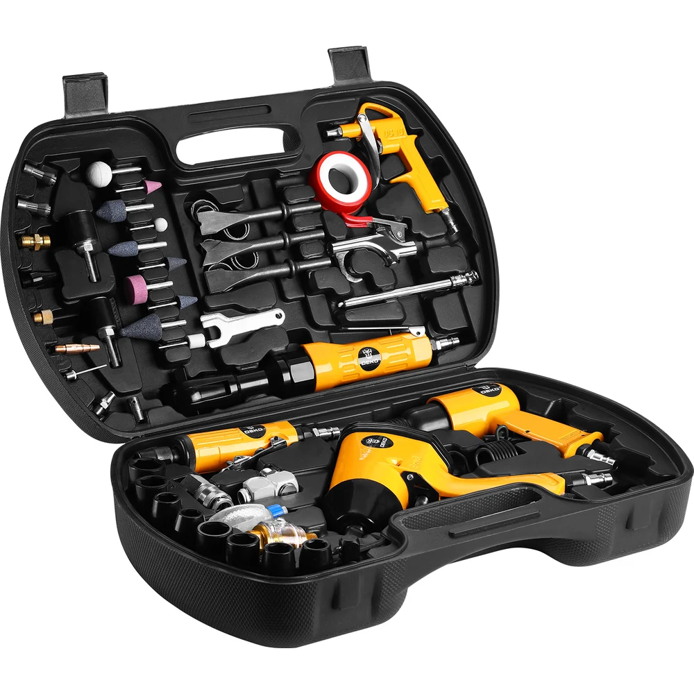 Купить Набор пневмоинструмента и аксессуаров DEKO PT61D в кейсе, 61 предмет 085-1083 по лучшей цене с доставкой - интернет магазин №1 в России