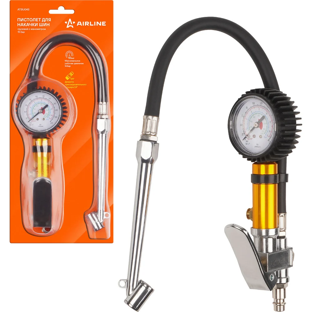Купить Пистолет для накачки шин Airline грузовой, с манометром 15 атм ATBU045 по лучшей цене с доставкой - интернет магазин №1 в России
