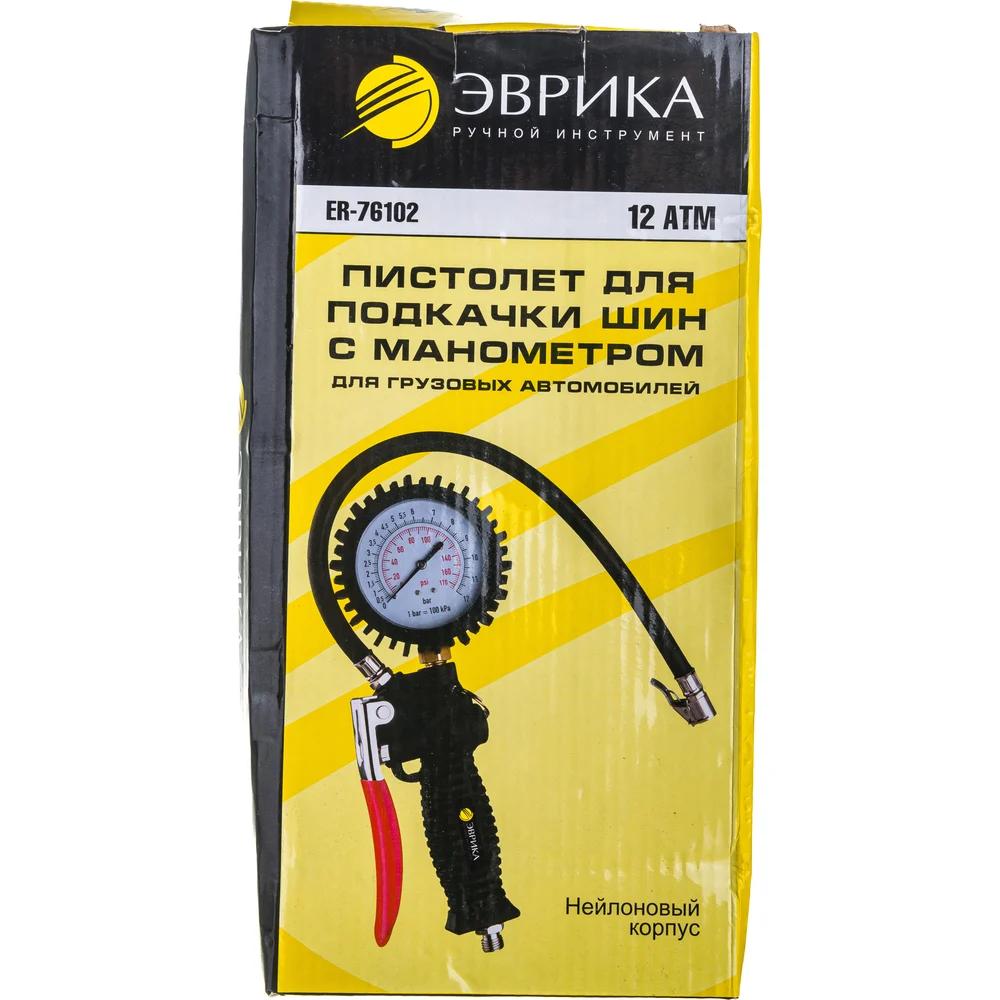 Купить Пистолет для подкачки шин с манометром 12 АТМ для грузовых автомобилей ЭВРИКА ER-76102 по лучшей цене с доставкой - интернет магазин №1 в России