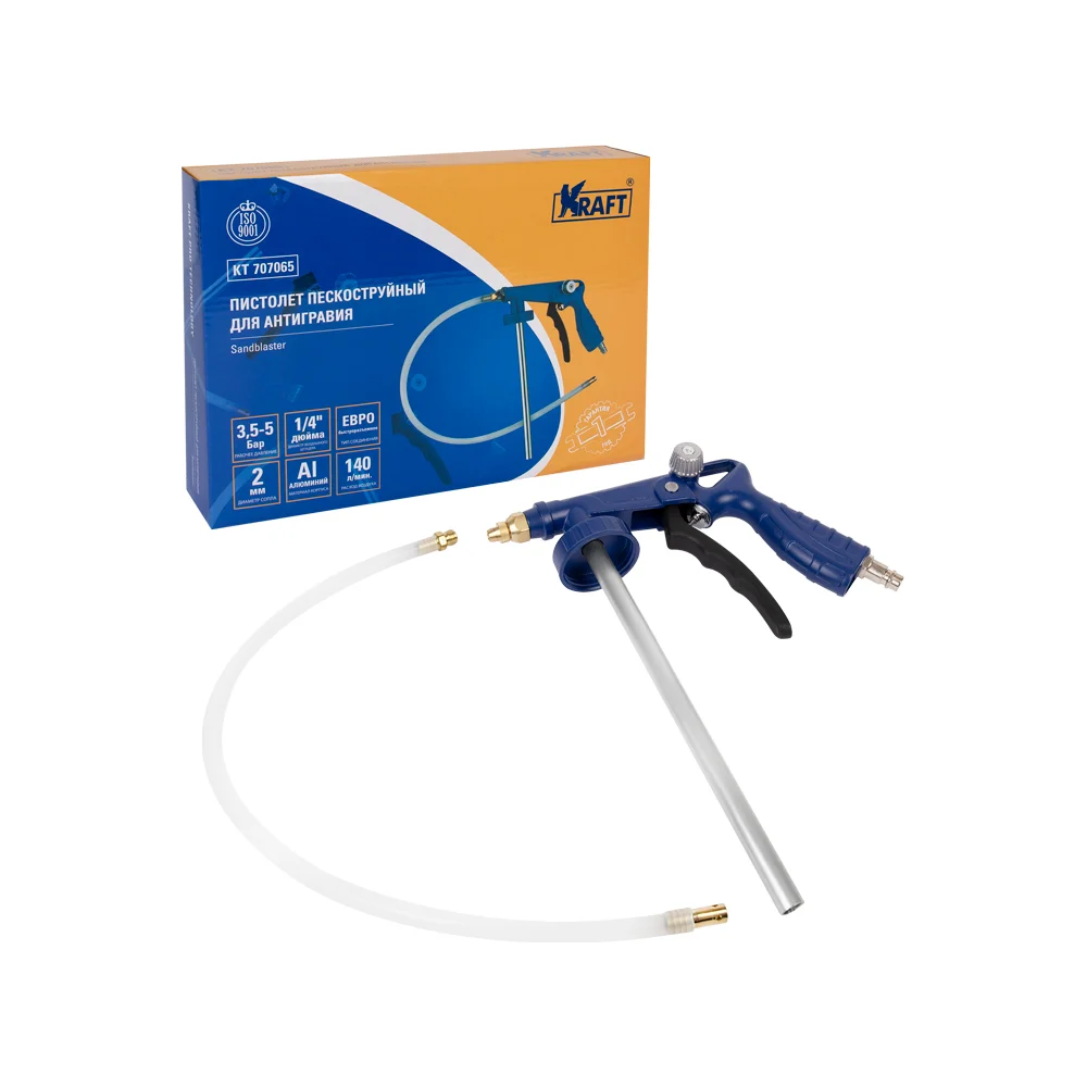 Купить Пескоструйный пистолет для антигравия со шлангом и регулятором давления KRAFT KT 707065 по лучшей цене с доставкой - интернет магазин №1 в России
