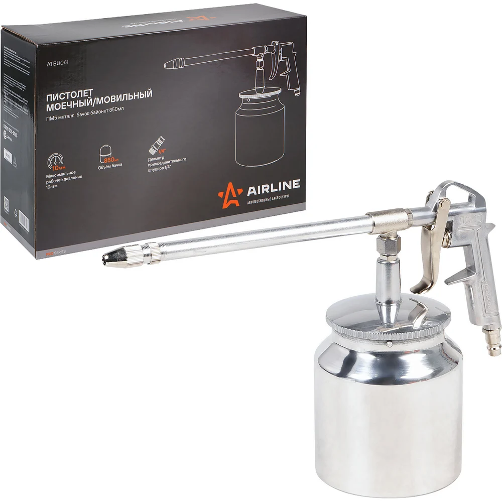 Купить Моечный/мовильный пистолет Airline ПМ5 металл, бачок байонет 850 мл PRO ATBU061 по лучшей цене с доставкой - интернет магазин №1 в России