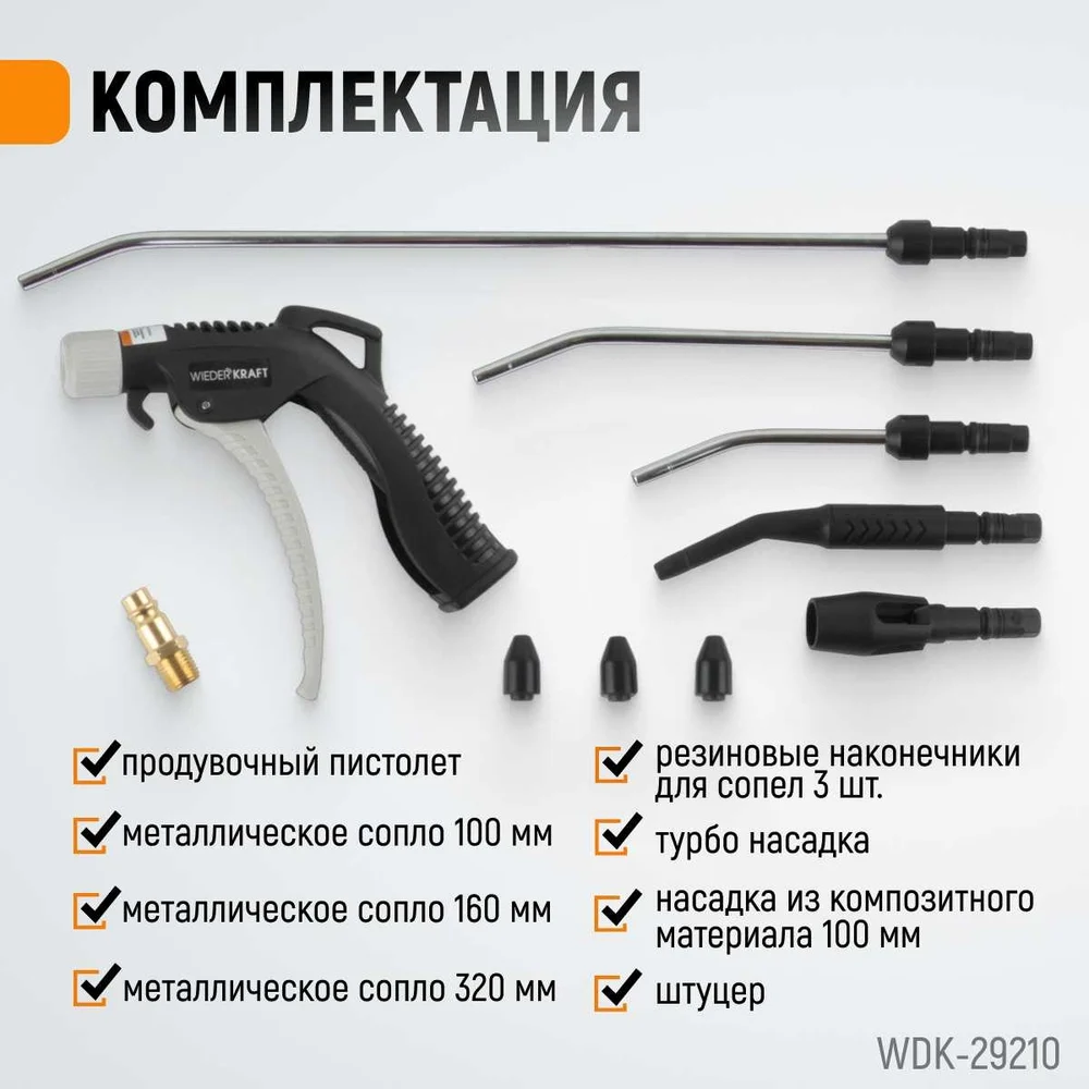 Купить Универсальный продувочный пистолет со сменными насадками WIEDERKRAFT 9 предметов WDK-29210 по лучшей цене с доставкой - интернет магазин №1 в России