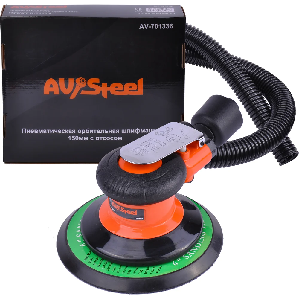 Купить Пневматическая орбитальная шлифмашина AV Steel 150 мм с отсосом AV-701336 по лучшей цене с доставкой - интернет магазин №1 в России