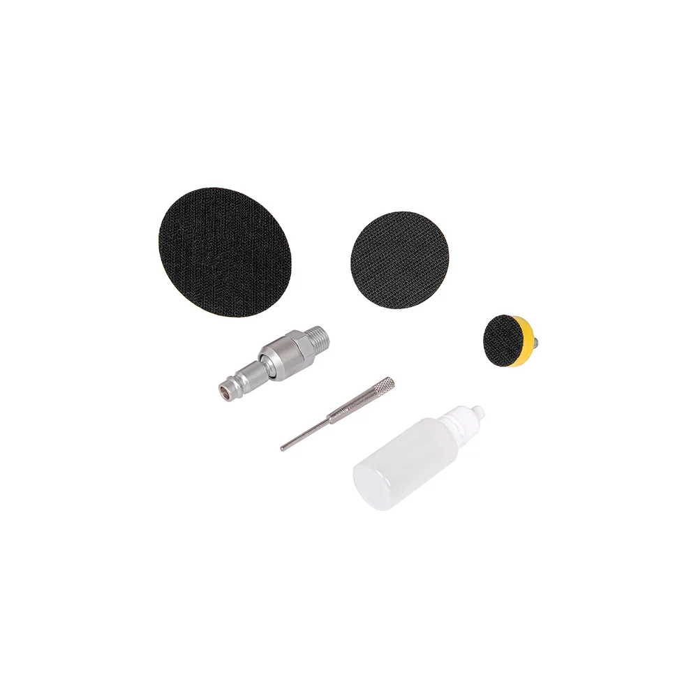 Комплектация Шлифмашинка; Шлифовальные диски 3 шт. Ø25, 50, 75 мм; Фиксатор для смены диска; Быстросъемный переходник шарнирный; Маслёнка; Инструкция