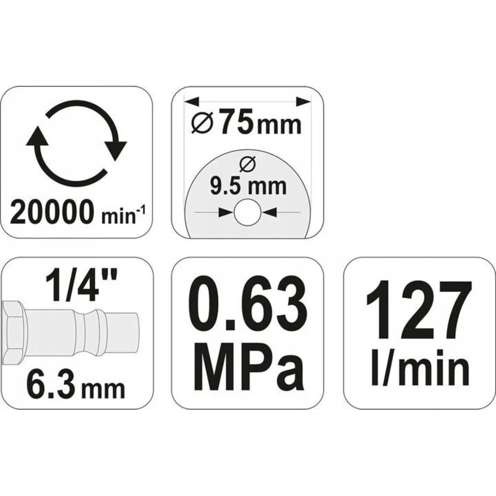 Купить Пневматический резак YATO 75 мм 0,63 МПа, 127 л/мин YT-09715 по лучшей цене с доставкой - интернет магазин №1 в России