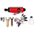 Комплектация Бормашинка; Цанга на 4 мм; 2 ключа; Набор шарошек в количестве 10 штук (5 шт. под 6 мм цангу, и 5 шт. под 4 мм цангу); Разъем 1/4" внешняя резьба - EURO папа; Масленка; Паспорт; Кейс