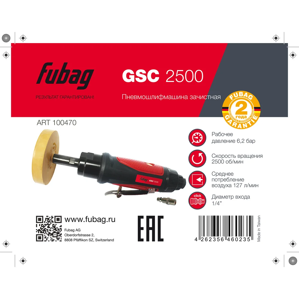 Купить Пневмошлифмашина зачистная FUBAG GSC 2500, 2500 об/мин, 6,3 бар, композитный корпус, 100470 по лучшей цене с доставкой - интернет магазин №1 в России