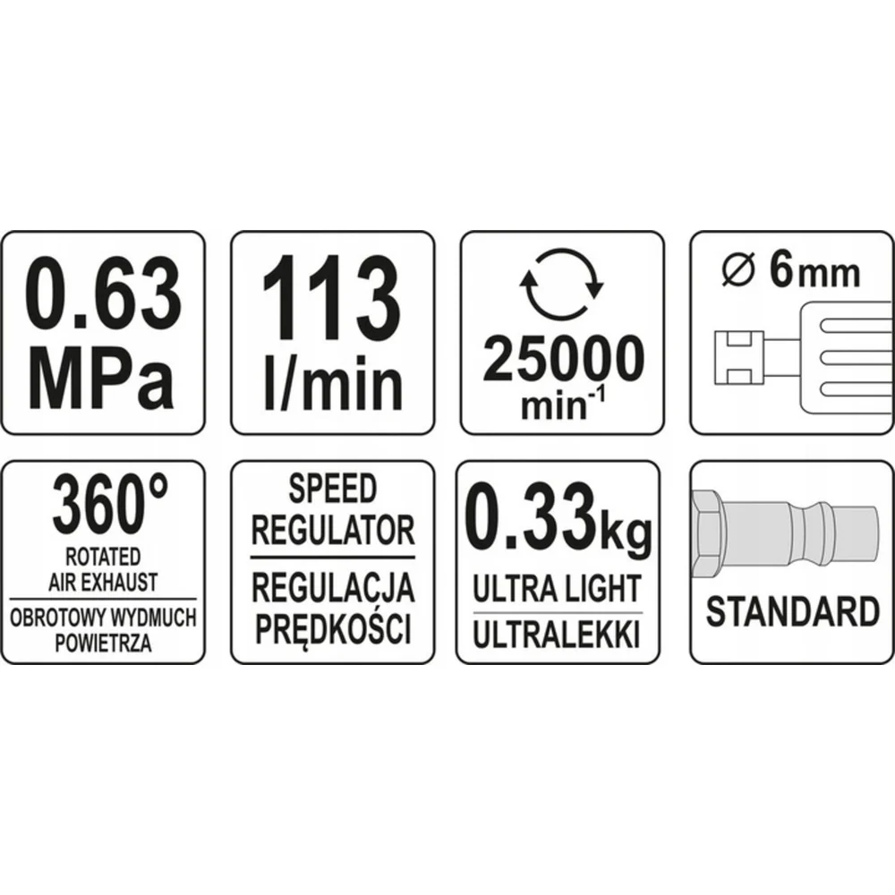 Купить Прямая пневматическая шлифмашина YATO YT-09633 по лучшей цене с доставкой - интернет магазин №1 в России