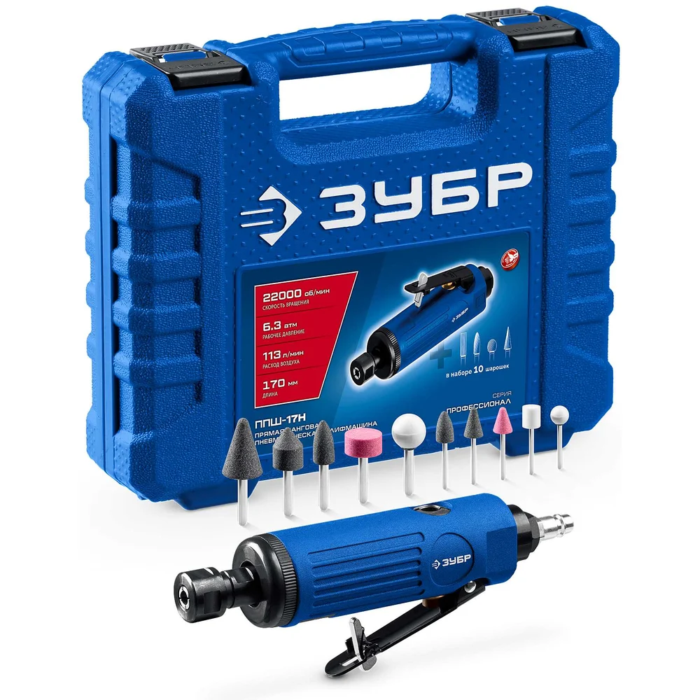 Купить Прямая цанговая пневмошлифмашина ЗУБР ПРОФЕССИОНАЛ 64333 по лучшей цене с доставкой - интернет магазин №1 в России