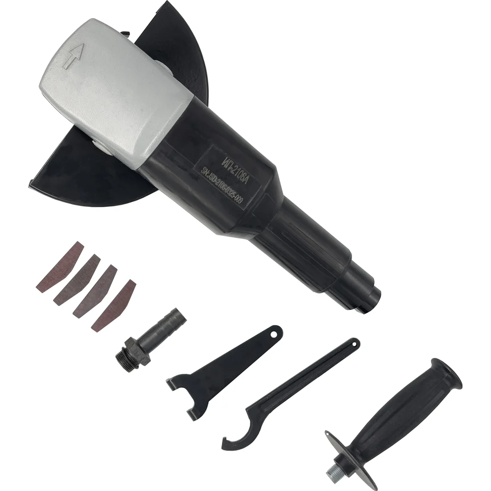 Комплектация Шлифмашина пневматическая ИП-2106А – 1шт; Защитный кожух -1шт; Ниппель – 1шт; Пластина – 4шт; Ключ специальный – 2шт; Ручка дополнительная – 1шт; Паспорт – 1шт
