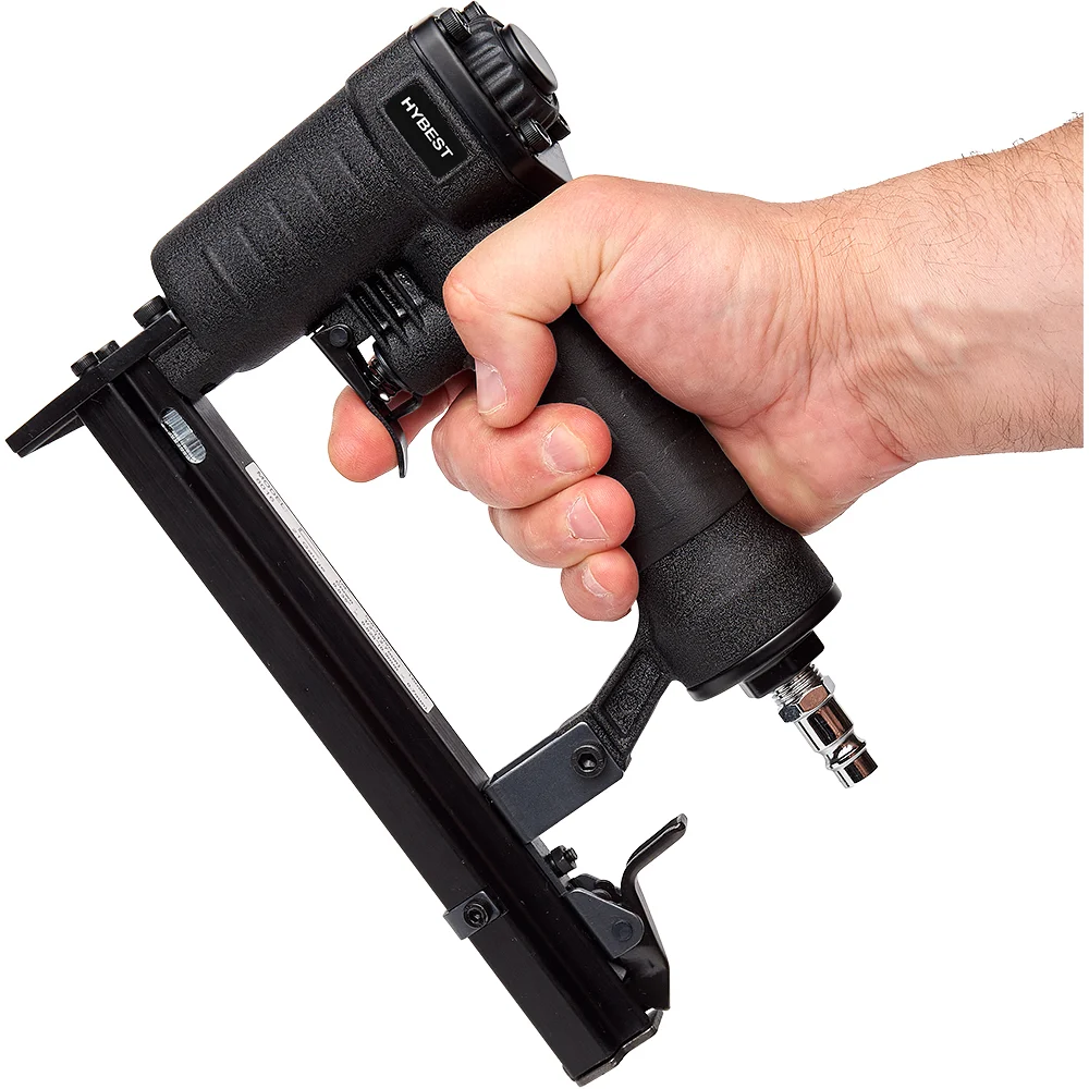 Купить Пистолет скобозабивной Hybest мебельный 8016F, пневматический, обивочные скобы тип 80 21Ga HB8016F по лучшей цене с доставкой - интернет магазин №1 в России