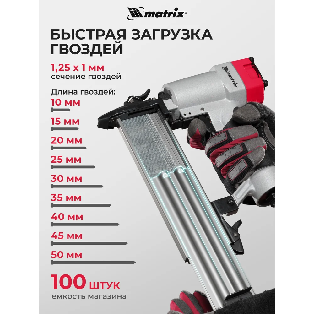 Купить Пневматический нейлер для гвоздей MATRIX 57410 по лучшей цене с доставкой - интернет магазин №1 в России