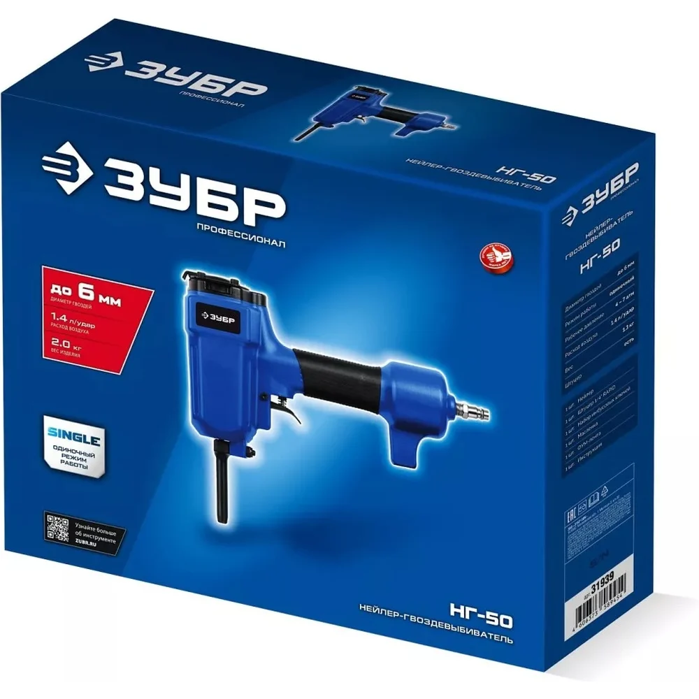 Пневматический нейлер-гвоздевыбиватель ЗУБР Профессионал для гвоздей диаметром до 6 мм, НГ-50, 31939