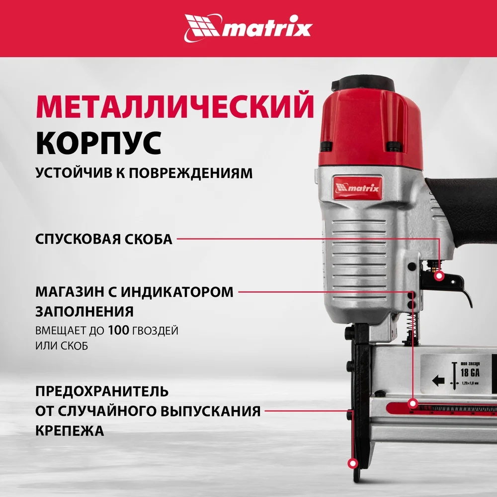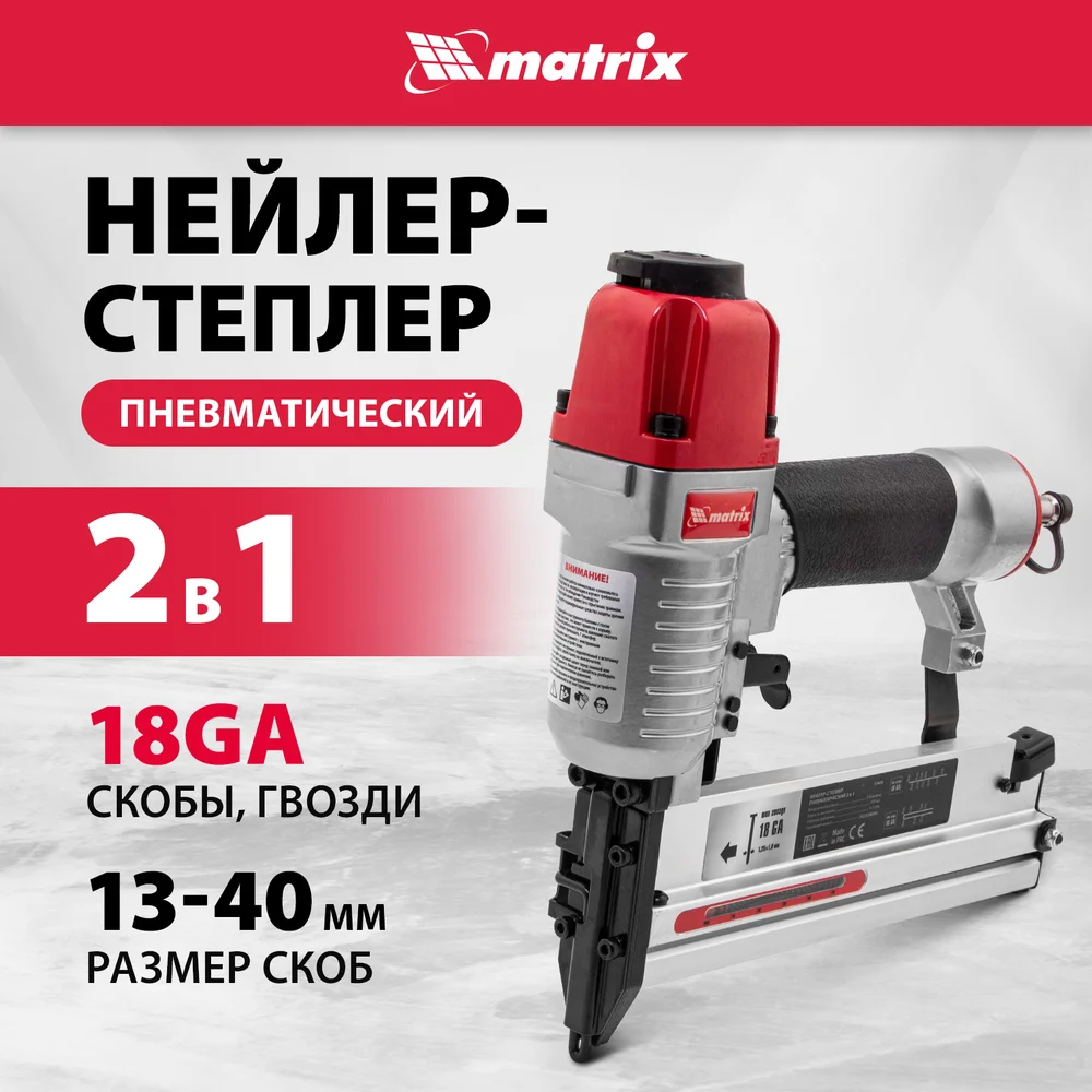 Купить Пневматический нейлер-степлер с регулировкой глубины MATRIX 2 в 1 57428 по лучшей цене с доставкой - интернет магазин №1 в России