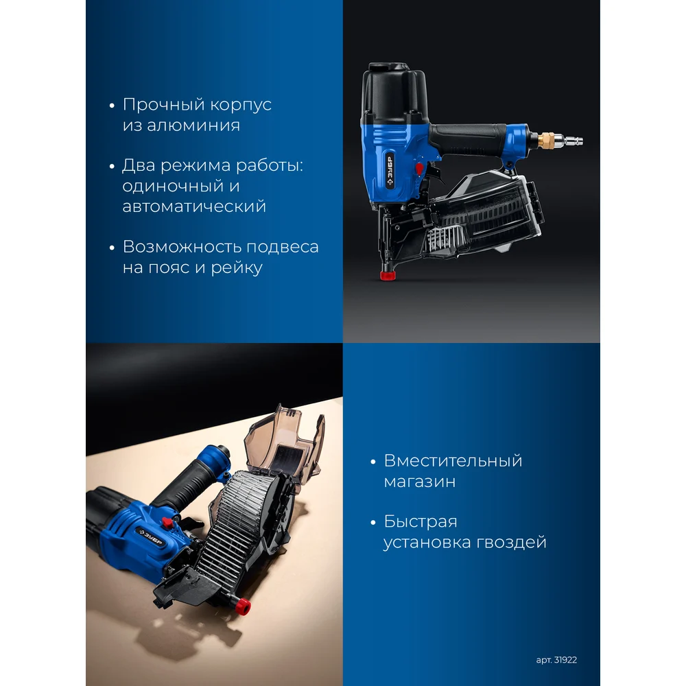 Купить Пневматический обшивочный нейлер для барабанных гвоздей ЗУБР профессионал CSN-65 CSN (38-65 мм) 31922 по лучшей цене с доставкой - интернет магазин №1 в России