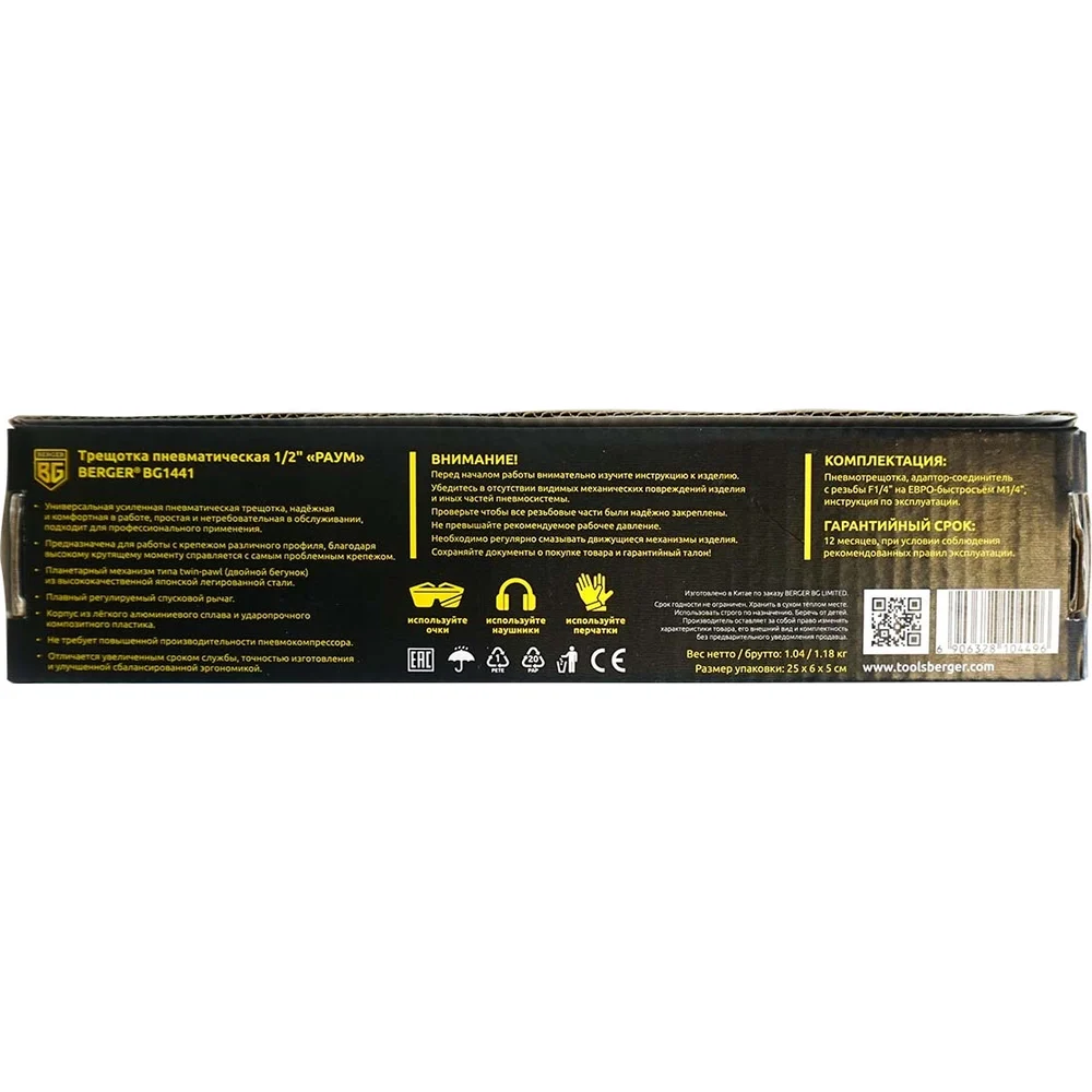 Купить Пневматическая трещотка Berger BG РАУМ 1/2", 85 Нм BG1441 по лучшей цене с доставкой - интернет магазин №1 в России