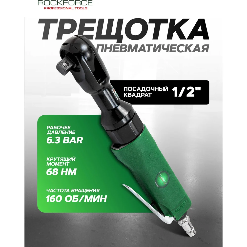 Купить Пневмотрещотка с прорезиненной рукояткой Rockforce 68Нм, 1/2''(потребление 77л/мин, 160 об/мин, L-254мм,6.3Bar,штуцер 1/4) RF-RP7412(50372) по лучшей цене с доставкой - интернет магазин №1 в России