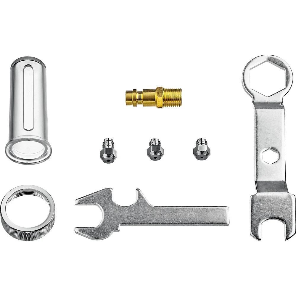 Комплектация Пневматический заклепочник; Съемные насадки - 4 шт; Быстросъемный коннектор; Ключ - 2 шт; Контейнер для отработанных заклепок; Коробка