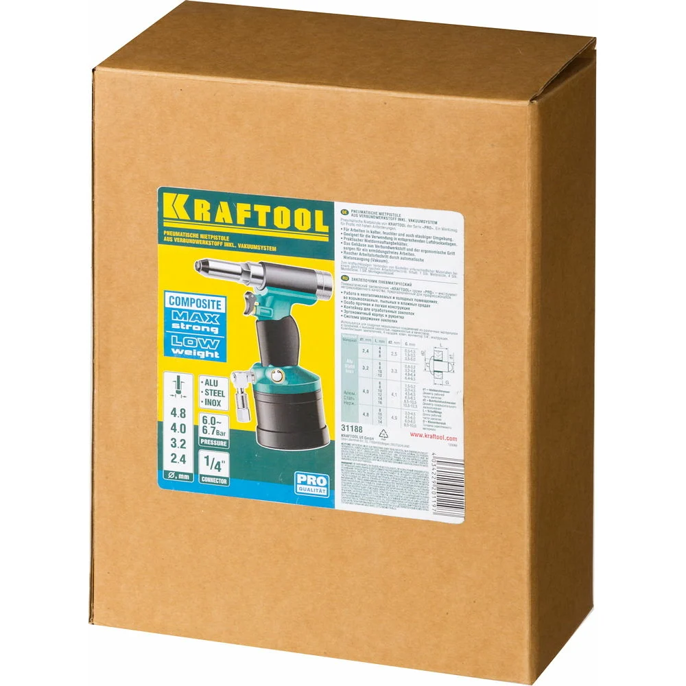 Купить Пневматический заклепочник KRAFTOOL ARC-48 Vacuum-Lock, для заклепок, 2.4-3.2-4-4.8мм 31188 по лучшей цене с доставкой - интернет магазин №1 в России