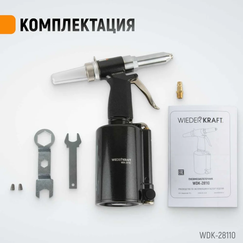 Купить Пневмогидравлический заклепочник WIEDERKRAFT 2.4, 3.2, 4.0, 4.8, 6.4 мм, усилие 14000 Н WDK-28110 по лучшей цене с доставкой - интернет магазин №1 в России