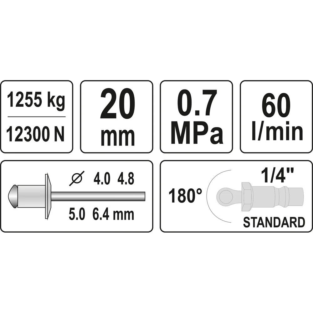Пневмозаклепочник YATO 4.0-6.4 мм YT-36177