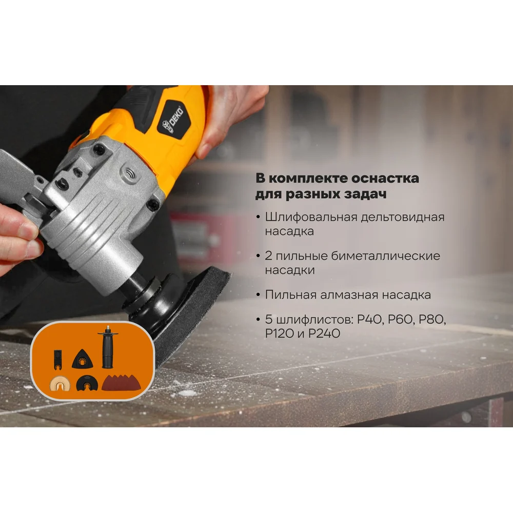 Реноватор DEKO DKOT650 Multi быстрозажимной + набор предметов 9 шт 085-1076
